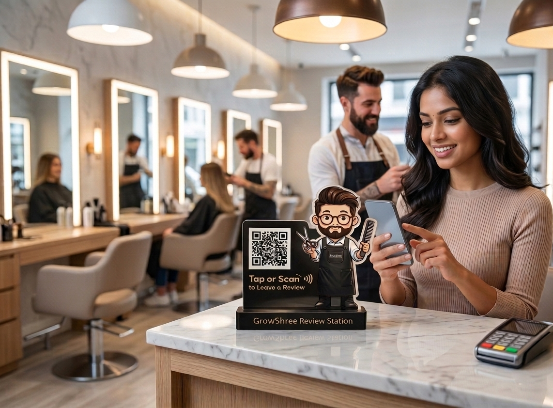 • Custom Branding – Add your salon logo, brand colors, and personalized review link.