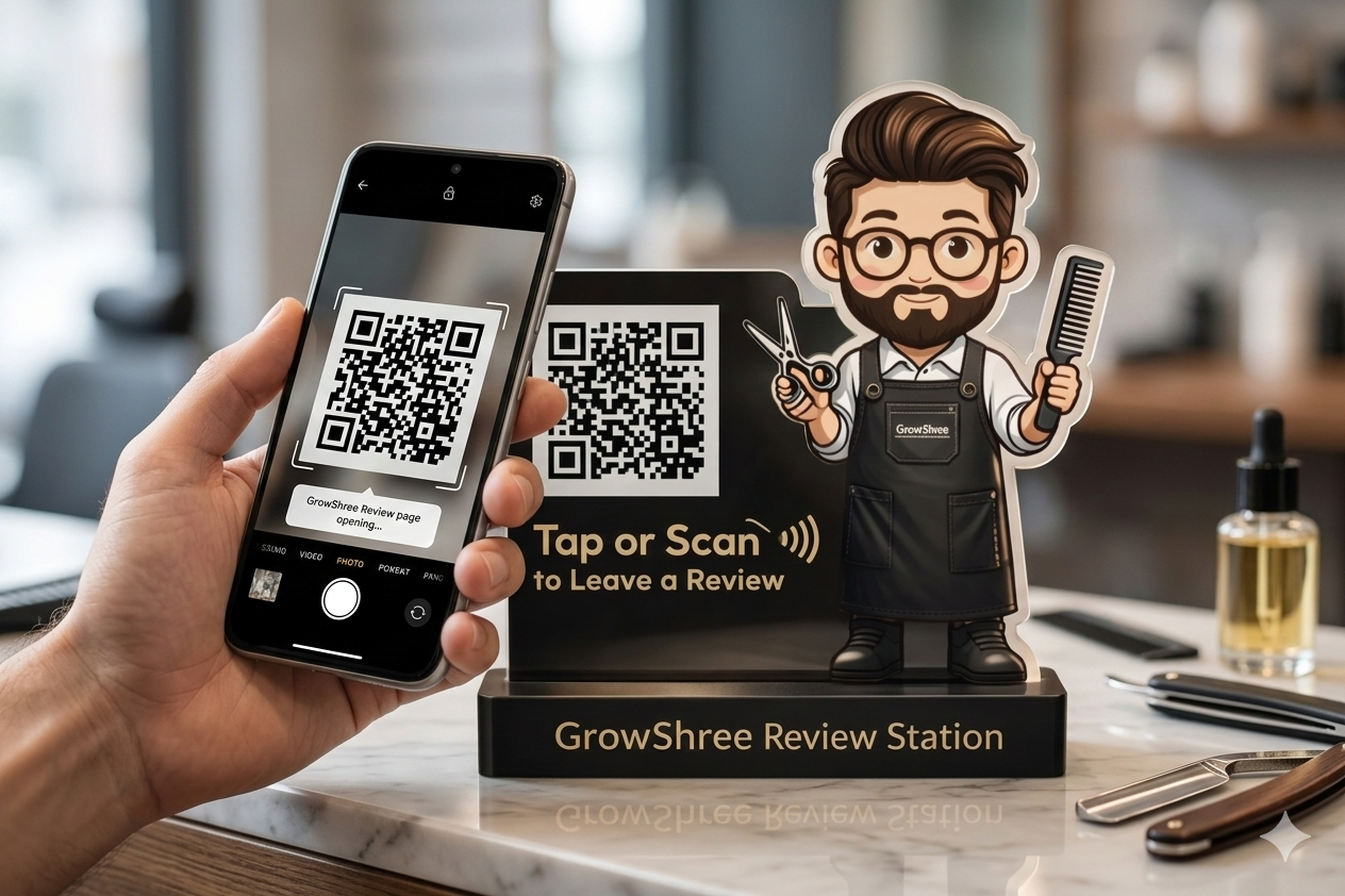 • Instant Google Reviews – Clients can scan the QR code or tap using NFC to leave reviews easily.