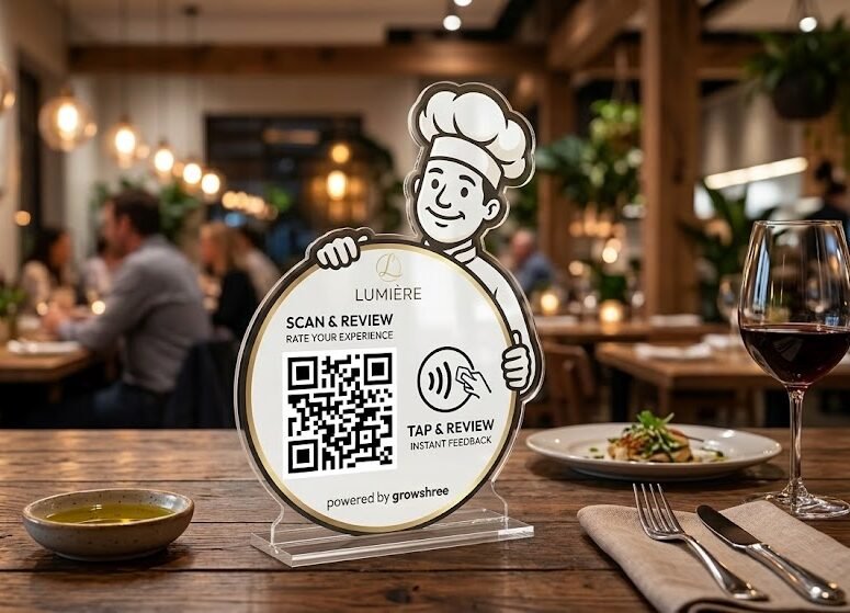 • Fully Customized Design – Add your restaurant logo, brand colors, and review link.