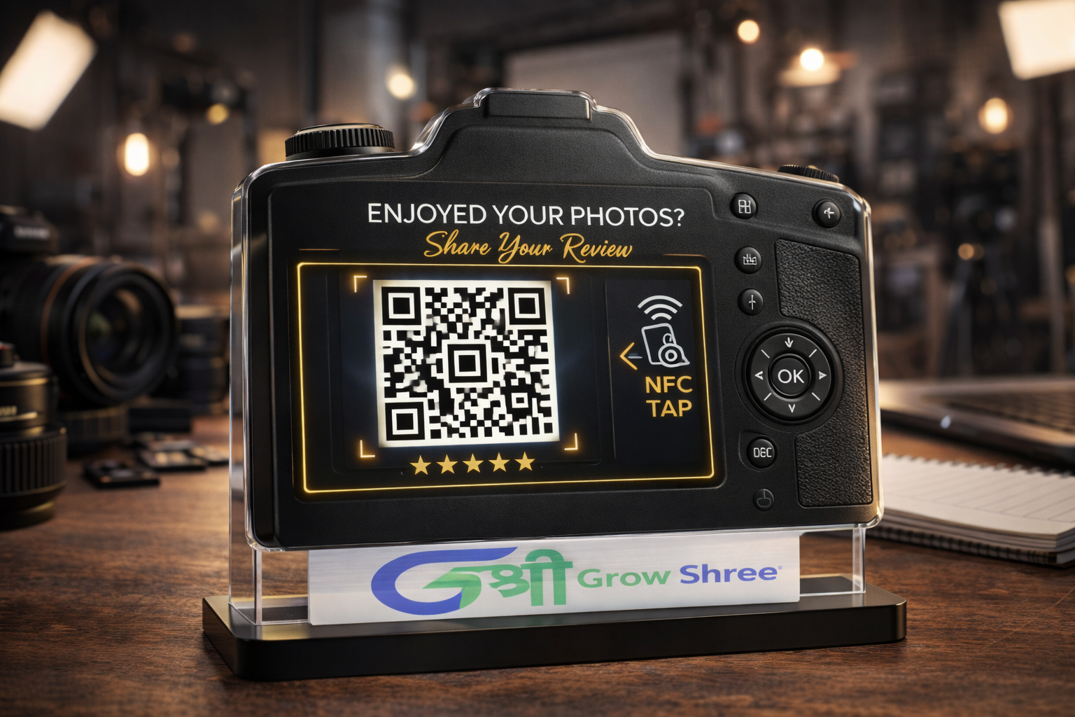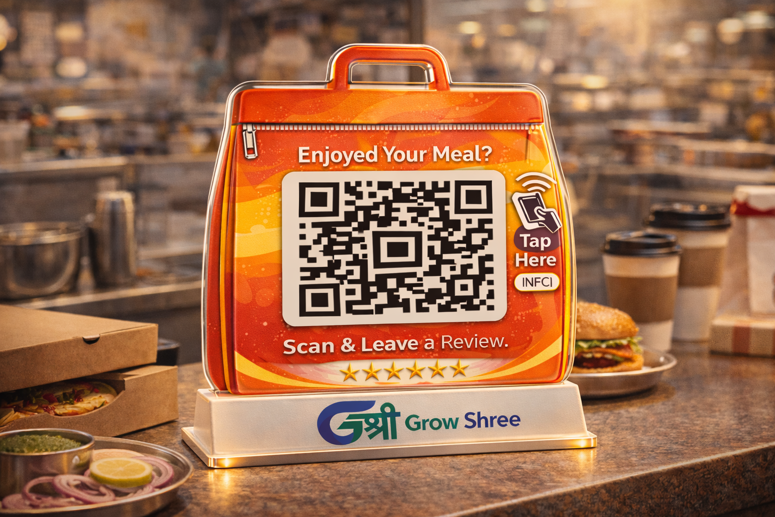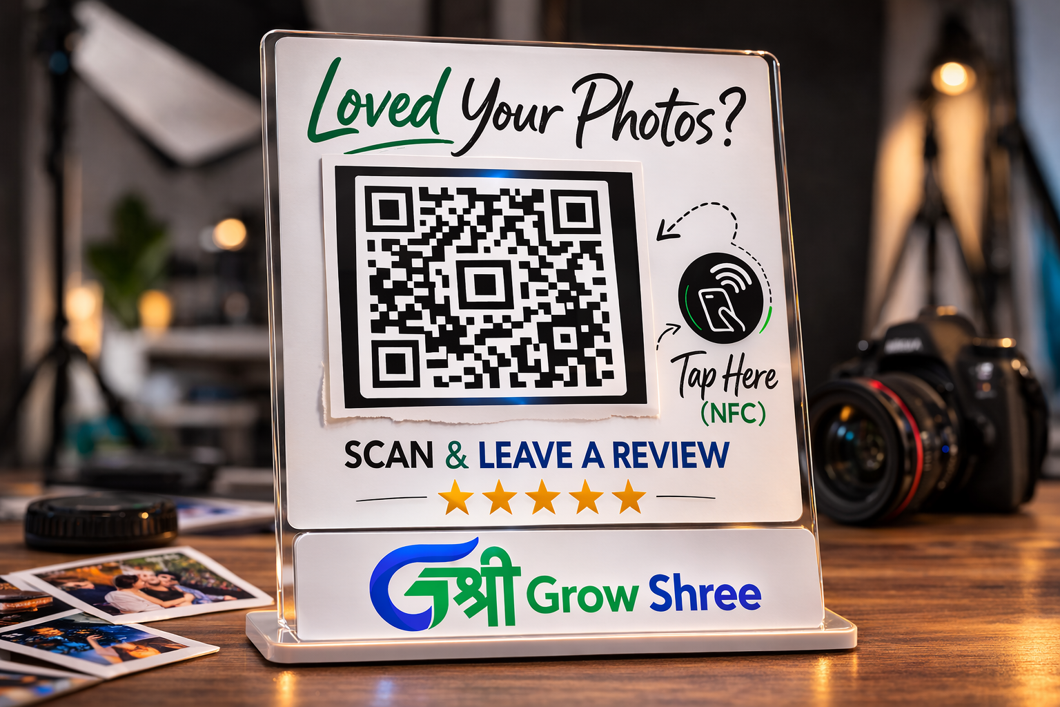 The GrowShree AI Review Booster Standee is a smart, modern solution designed to help businesses collect more Google reviews effortlessly. Placed on your reception desk, billing counter, or table, this standee allows customers to instantly scan the QR code and leave a review in seconds. It’s the perfect tool for restaurants, clinics, salons, gyms, retail stores, and service businesses looking to grow their online reputation.