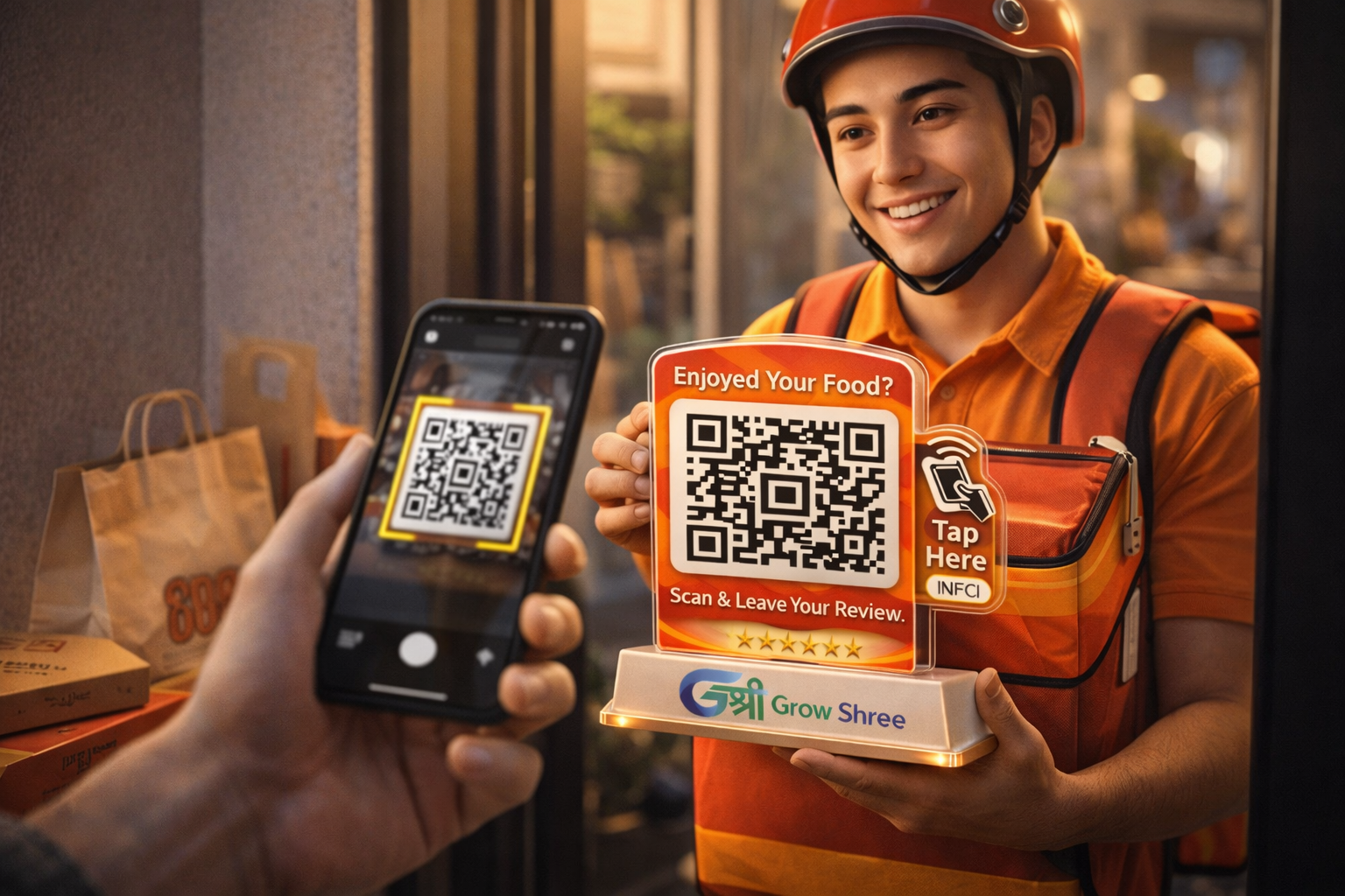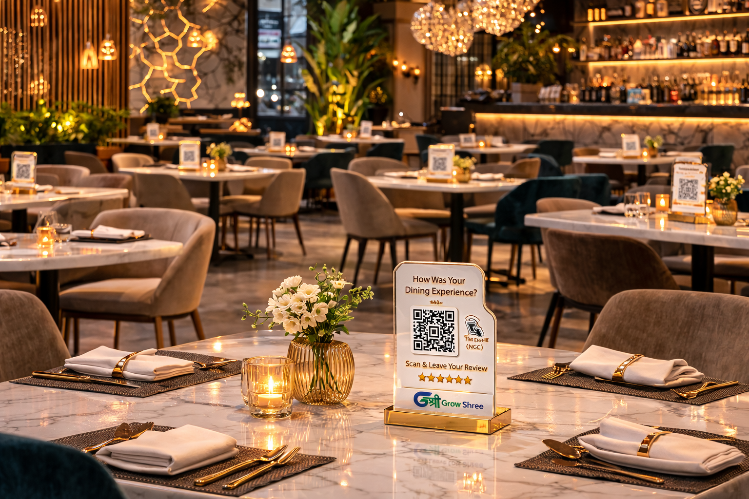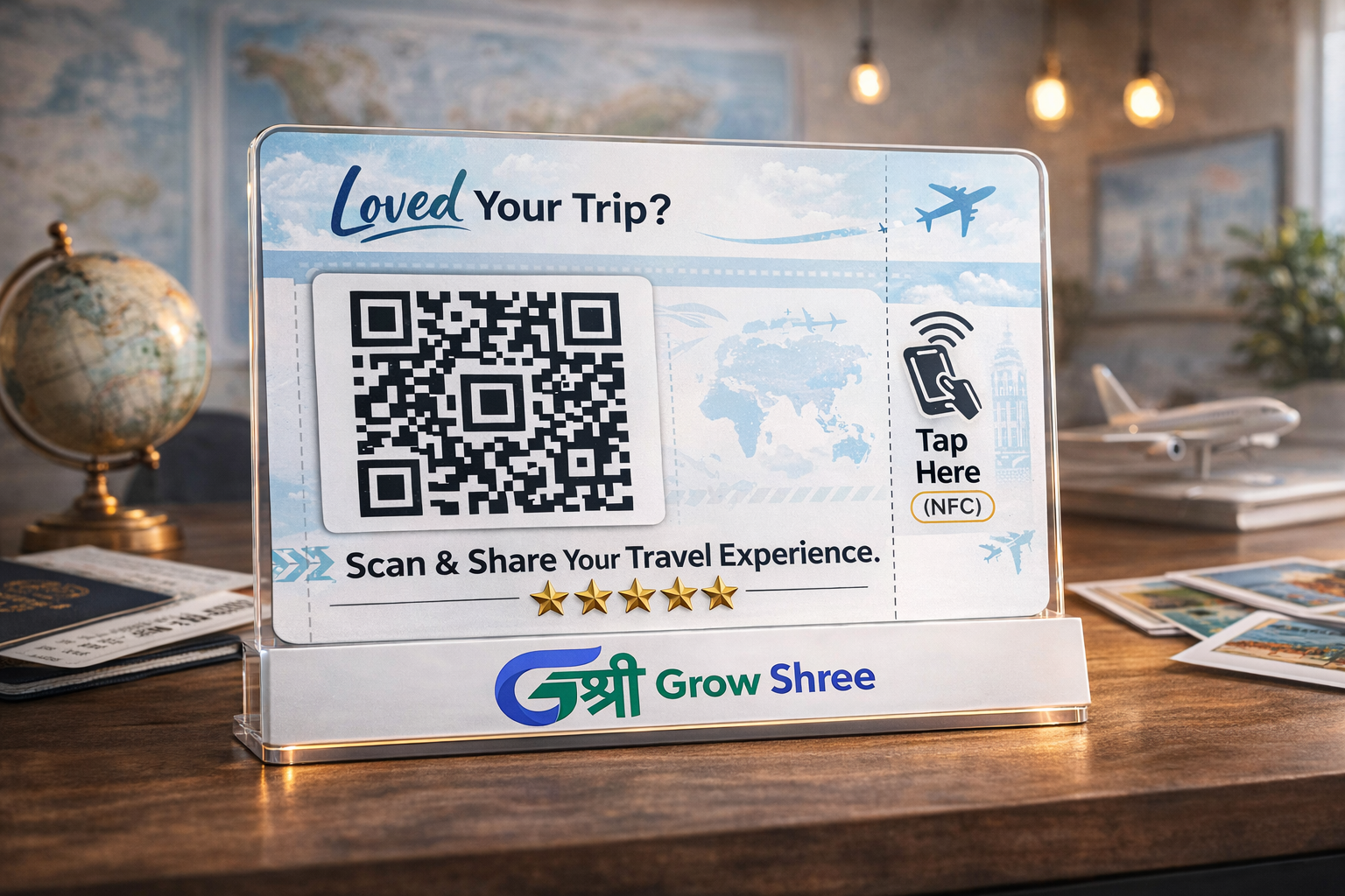 The GrowShree AI Review Booster Standee is a smart, modern solution designed to help businesses collect more Google reviews effortlessly. Placed on your reception desk, billing counter, or table, this standee allows customers to instantly scan the QR code and leave a review in seconds. It’s the perfect tool for restaurants, clinics, salons, gyms, retail stores, and service businesses looking to grow their online reputation.